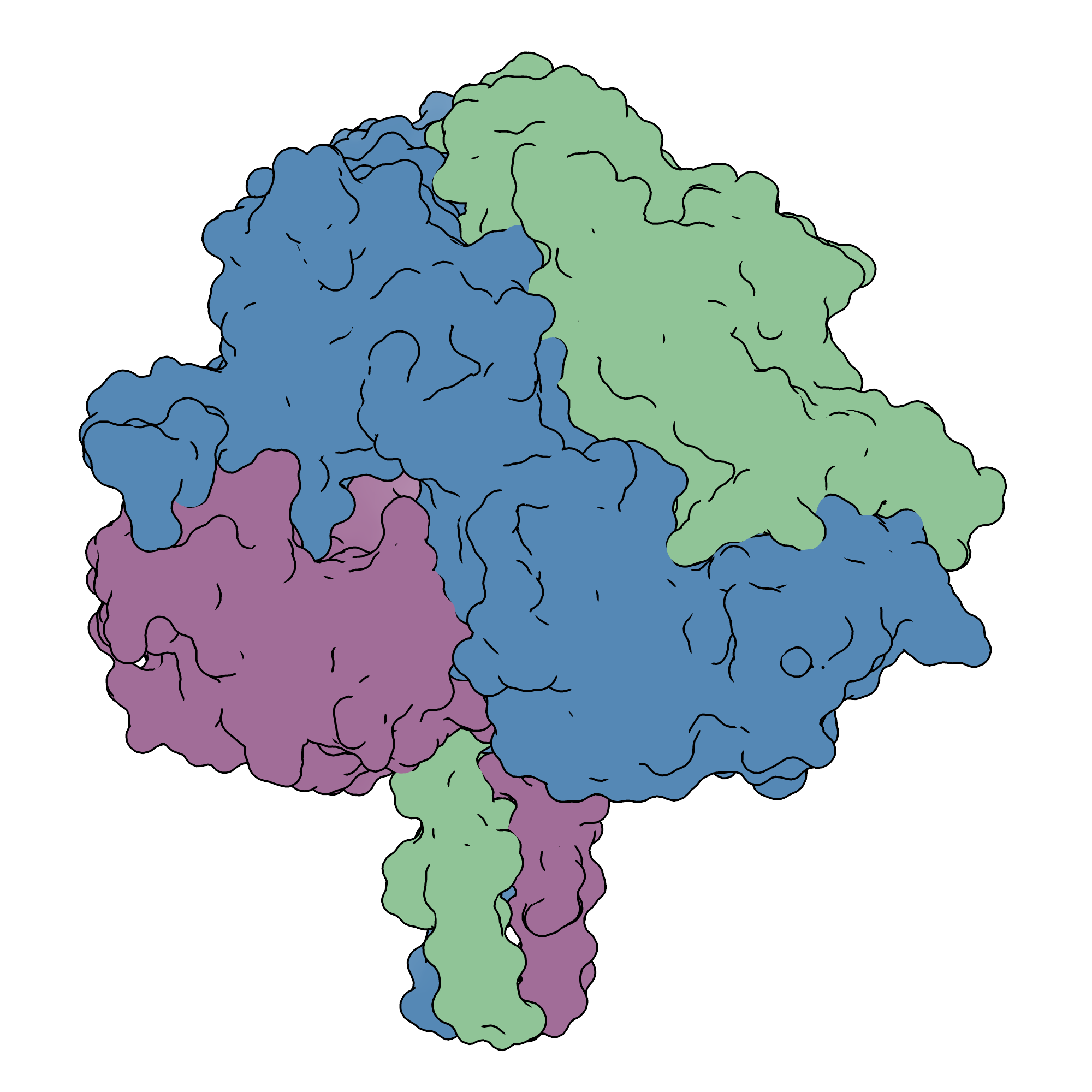 Nipah virus surface glycoproteins. The tetrameric receptor binding protein is on the left, and the trimeric fusion protein is on the right.